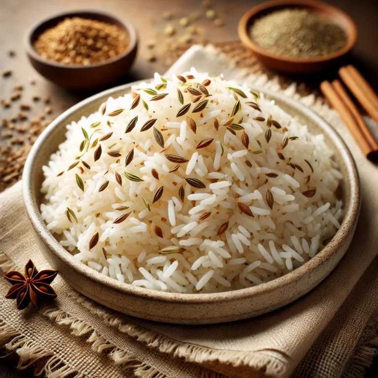 Jeera Rice is a popular Indian rice dish that is flavored with cumin seeds (jeera in Hindi). Jeera rice is made by cooking rice with cumin seeds, ghee (clarified butter), and other spices like turmeric, black pepper, and salt. Jeera rice is produced in many parts of India like Andhra Pradesh, Telangana, Karnataka, Tamil Nadu, Maharashtra